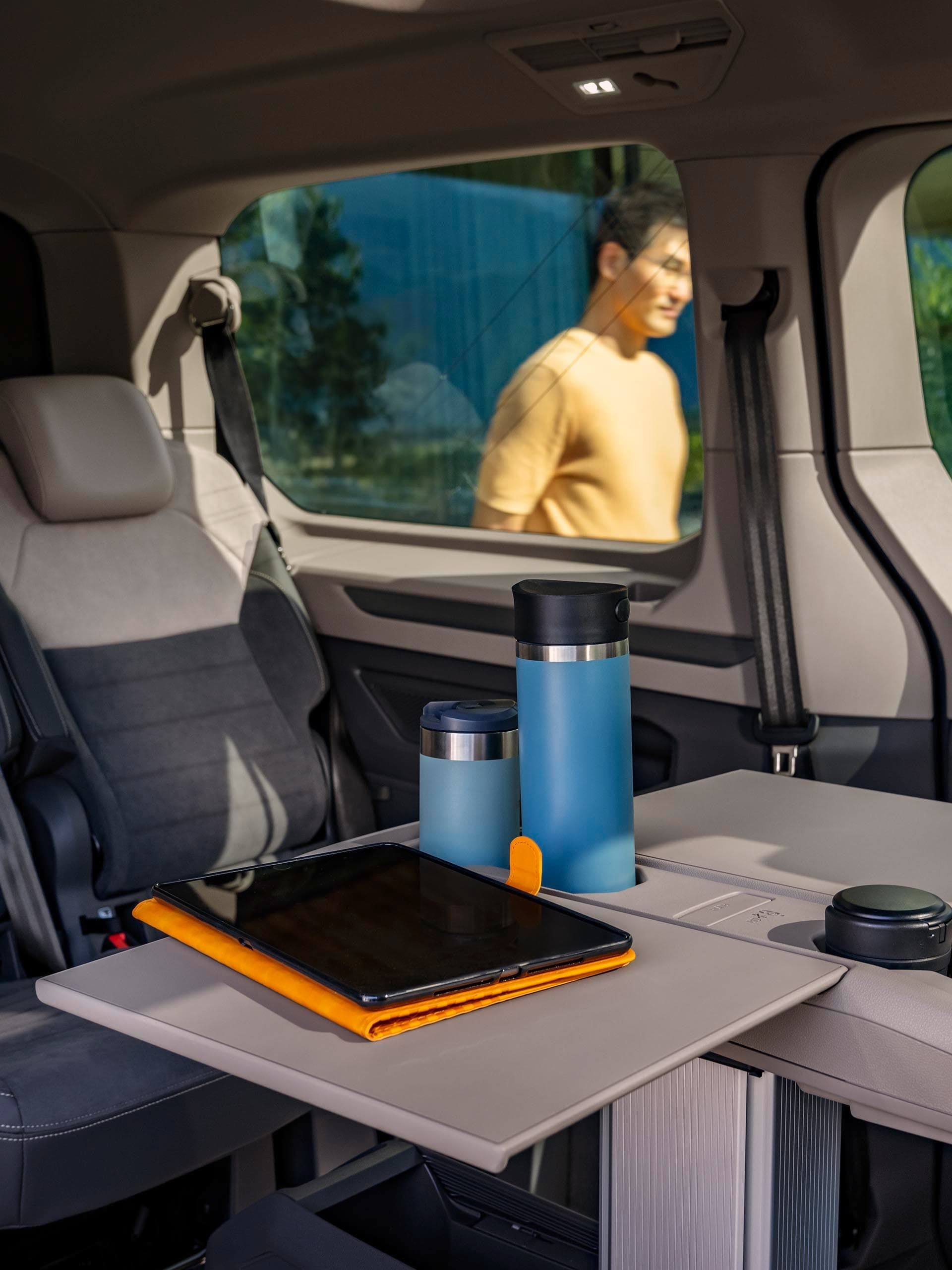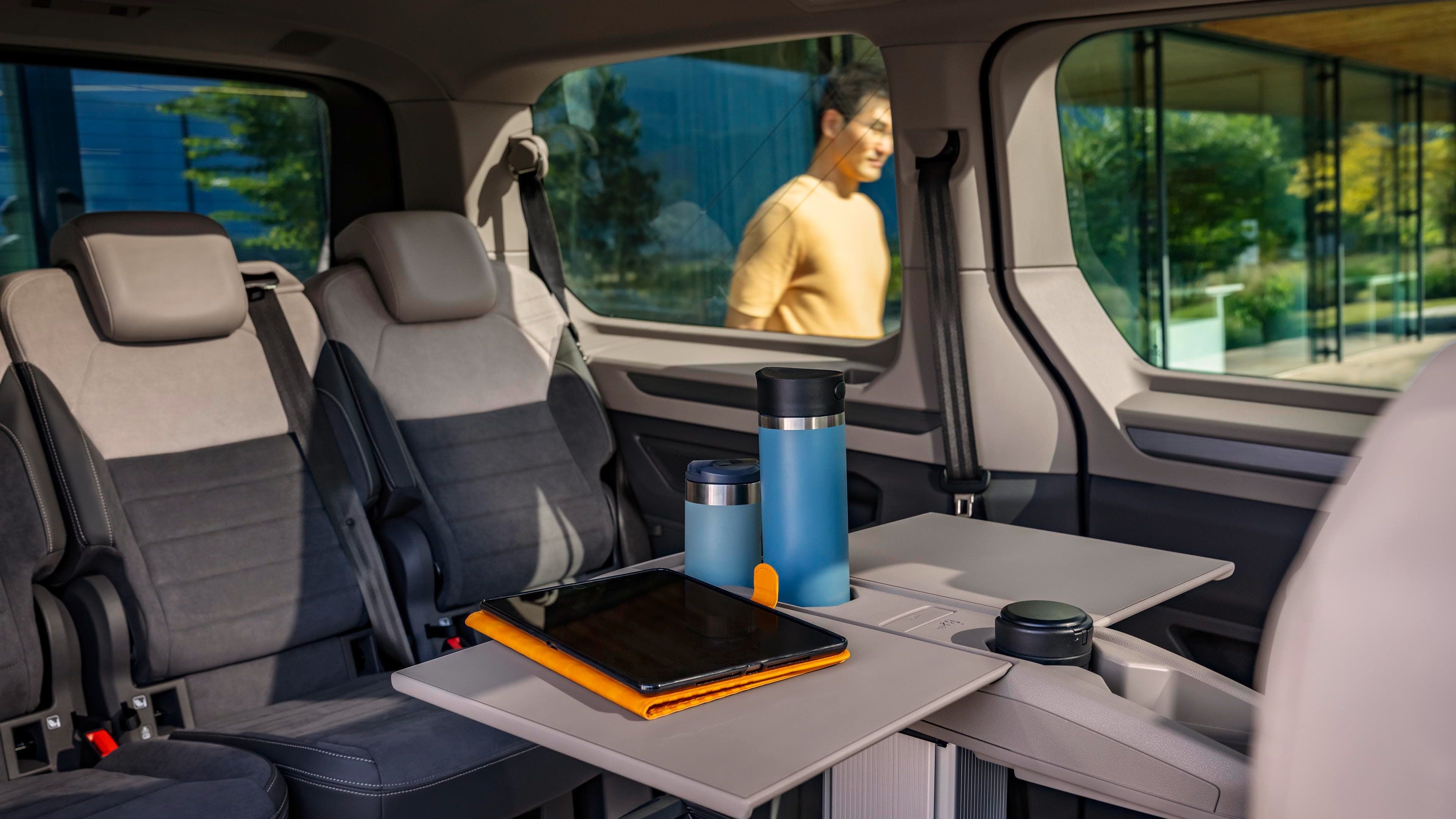 Uma das principais forças da Multivan são os bancos individuais dobráveis no habitáculo, que são 25% mais leves e podem ser removidos seguindo alguns passos fáceis. Isto torna ainda mais rápida a organização dos bancos de formas específicas. Seja face a face3 com a mesa multifuncional4 no meio, com todos os bancos voltados no sentido da viagem ou com os bancos exteriores removidos para o transporte de e-bikes5 - são necessários apenas alguns passos para organizar o interior do veículo de acordo com os seus desejos. Outro destaque: pela primeira vez, os bancos exteriores no habitáculo podem ser aquecidos6 - assegurando que as crianças também ficam confortáveis e quentes nos dias frios de inverno.