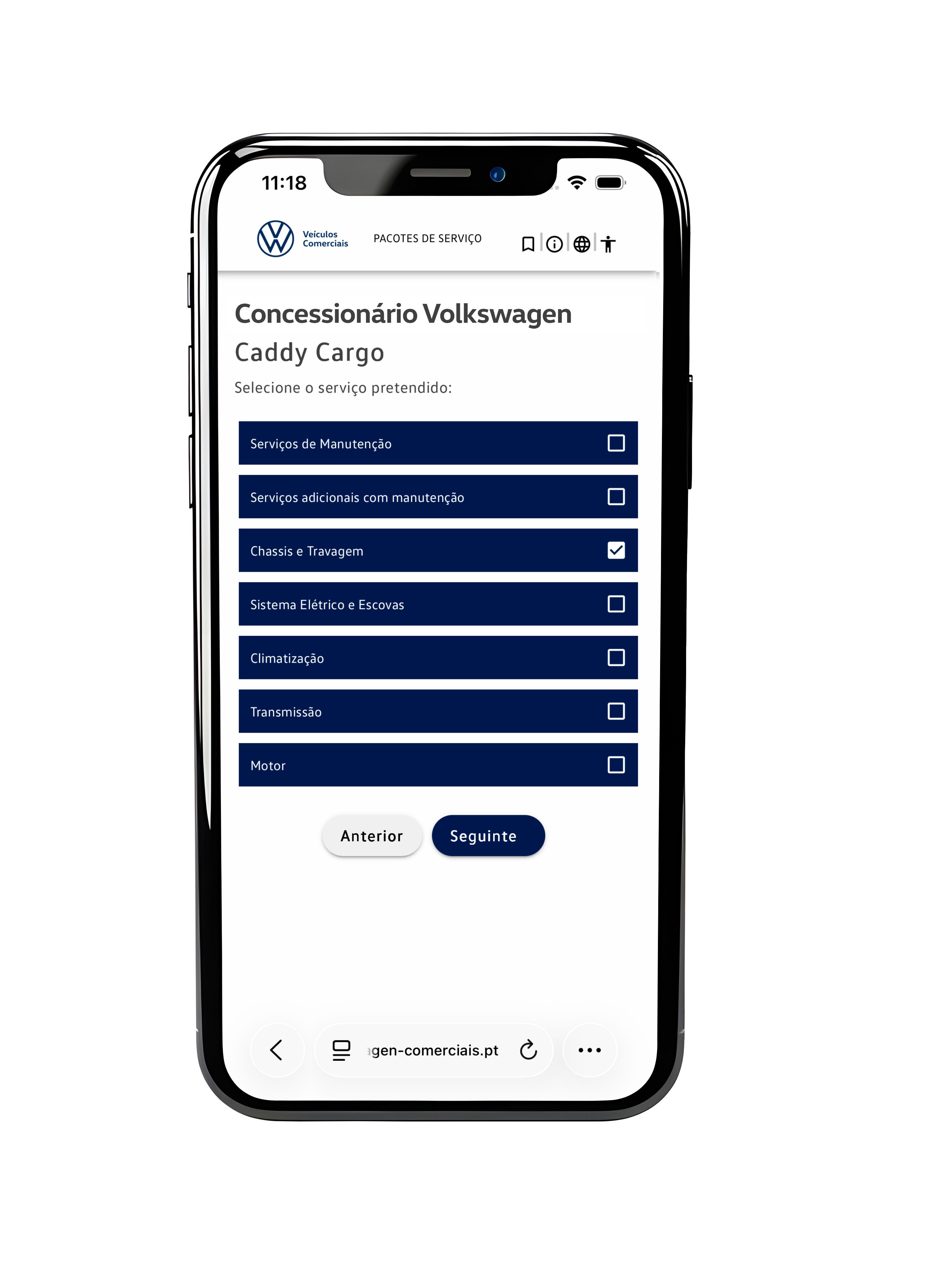 Apenas terá de inserir a matrícula e selecionar o Reparador Autorizado da sua preferência para descobrir os serviços disponíveis, específicos para o seu Volkswagen.